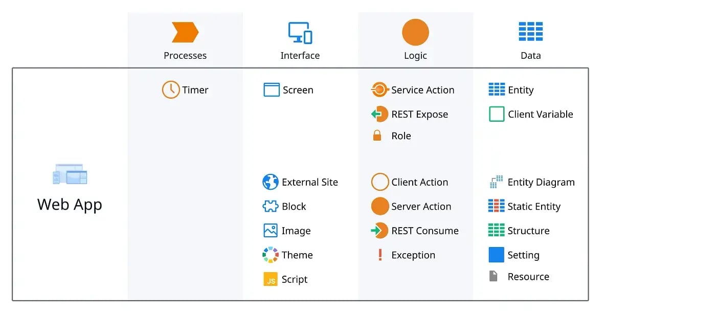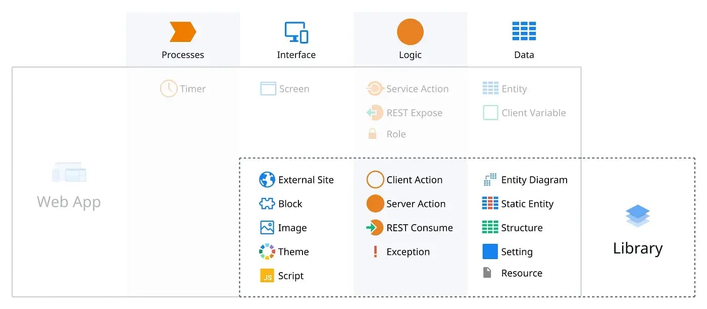 For a more detailed look at what types of elements can be public or exposed in each type of App, check out OutSystems Guide to Reusing Elements Across Apps.