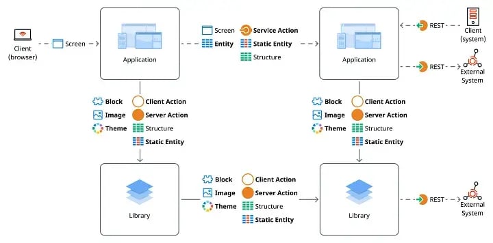 - A Library can only consume elements from other Libraries or consume external REST APIs.