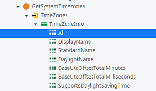 You will need to provide the same TimeZoneId from GetSystemTimezones action