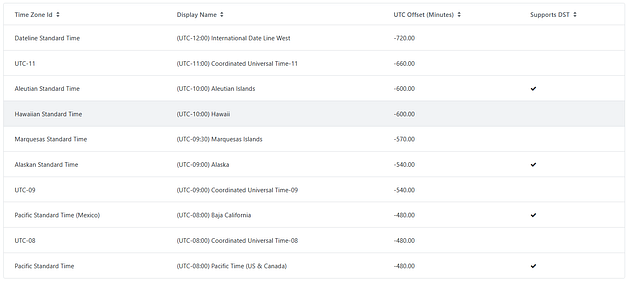 It will return list of time zones similar to below
