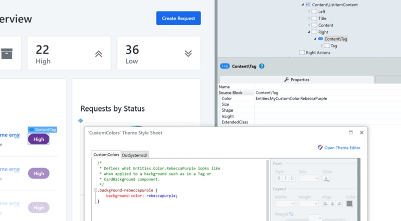 OutSystems UI uses static entities to guide the developer into a consistent pre-defined palette, standard spacing and sizes, etc.