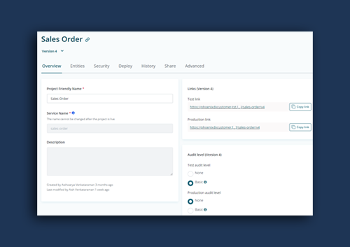 Choose a different Audit level for your project in both Test and Prod environments. With this capability, you can audit service API calls only in the environment that is critical to your business and save log space on the server.
