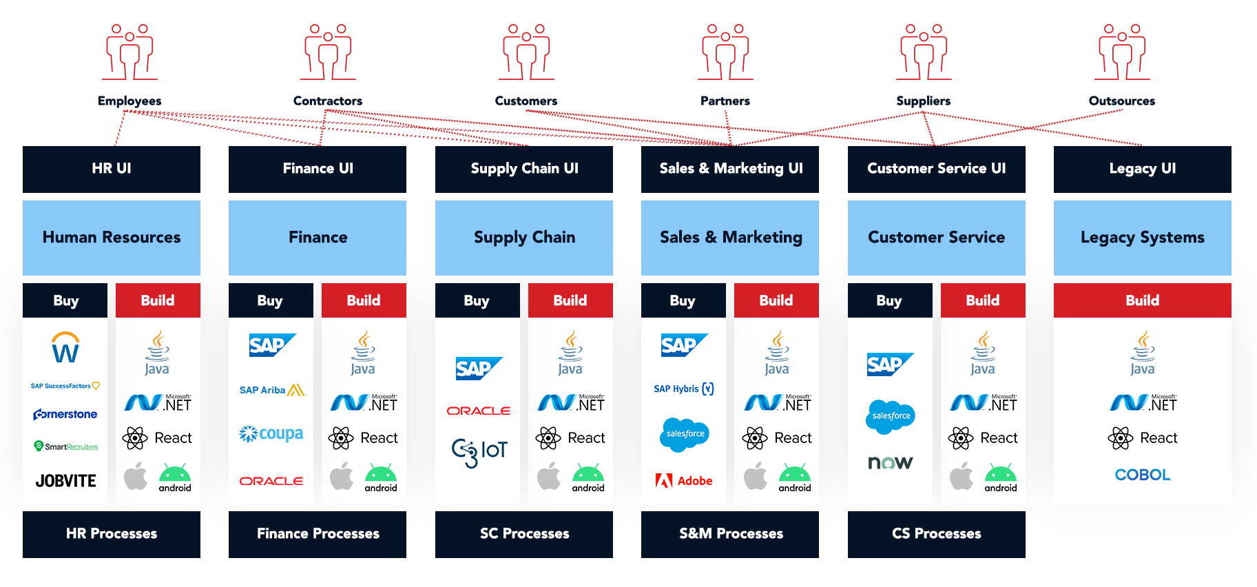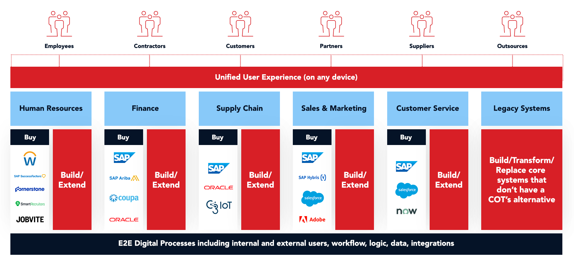 Several of our customers have found a better way to grow their businesses and adapt to new market conditions by adopting a fresh approach to their application architecture strategy. Using OutSystems AI-powered low-code platform, these companies have created an interoperable application layer on top of their ERP that seamlessly integrates with and complements any other system. With this approach, the ERP can focus on its core purpose while supporting the development of cutting-edge technologies and solutions that meet additional business needs without disruption - all for a fraction of the time, cost and risk of ERP extensions or traditional coding.